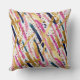 Des rayures dorées foncées bleu marine, rose et métallique forment un motif coloré sur cet oreiller. La conception abstraite est placée sur un arrière - plan blanc, et parsemée avec la coordination des travaux de peinture pour ajouter un intérêt supplémentaire. Les deux côtés du coussin ont le même design.
