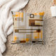 Cet oreiller moderne du milieu du siècle dispose de blocs rectangulaires en marron, tan, orange abricot sur un arrière - plan grège.