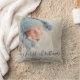 Un coussin cadeau de gardien pour célébrer les bébés pour les premiers noël. Le design simple comprend votre photo de bébé préférée avec typographie script dans un bleu de vacances pour personnaliser avec le nom de votre bébé.
