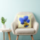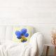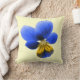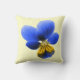 Ce coussin impressionnant présente une photo d'une fleur sauvage de Pansy. La photo a été colorée artificiellement, ce qui donne un sansy aux tons clairs et foncés de bleu et un centre jaune pâle. L'arrière - plan est jaune pâle pour montrer la beauté de cette fleur au maximum.
