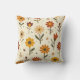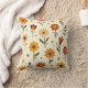 This soft throw pillow features blooms dancing across a soft, cream background, showcasing a whimsical array of flowers in warm shades of red, orange, and yellow. Each flower is playfully illustrated with distinct shapes, featuring vibrant petals and bold centers, complemented by scattered dots and delicate leaves. The cheerful composition evokes a joyful and inviting atmosphere, perfect for springtime energy.