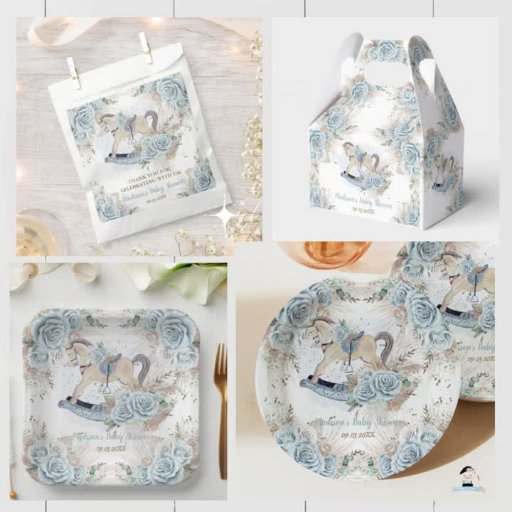 Boho Chic Pampas Grass Blue Floral Rocking HorseConçu par The Happy Cat Studio