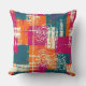 A vibrant abstract pattern throw pillow featuring energetic blocks of magenta, teal, orange, and distressed cream, arranged in a dynamic, overlapping grid. Rough brush textures and bold streaks create a raw, urban edge, while hand-drawn circular line motifs add an artistic, expressive touch. This design is perfect for those who love modern art, street-style, bold, and statement that need a striking, contemporary aesthetic.