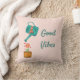 Arrosage et fleurir sur rose avec Good vibes calligraphie. Ajoutez une touche spéciale à votre décor de maison avec ce mignon oreiller à personnaliser jetée.