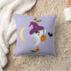 Not so scary Boo Halloween throw pillow with a ghost, bat and candy on one side and a repeat pattern with bones, cat, and spider webs on the other side.