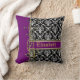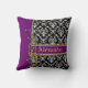 Motif damassé blanc noir avec bordure florale or et bande violet décoratif américain MoJo coussin de lancer / lancer. Un design élégant et élégant, noir blanc damassé, avec une bordure florale dorée, une bande violette et des noms (le sien et le sien). Moderne avec une ambiance vintage/rétro.