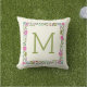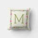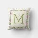Belle bordure fleurie aux couleurs printanières jetez ou lancez coussin avec de jolies fleurs et feuilles en bleu aqua, rose chaud et vert olive et votre monogramme. Personnalisez avec votre propre texte.