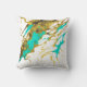 Coussin Bouchon d'encre d'alcool marbré turquoise et or