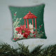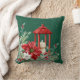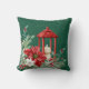 Ce joli coussin de vacances a une image d'un poinsettia rouge, de fleur blanche et d'un bouquet d'angle feuille vert tendre. Juste derrière le bouquet se trouve une lanterne rouge à l'ancienne avec une bougie blanche de Noël. L'image est placée sur un arrière - plan vert turquoise moyen foncé, et un confetti de parties scintillant dorée subtil est aspergé sur tout. L'arrière du coussin a le même design. Elégant et festif !