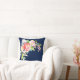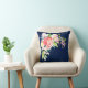 Une aquarelle brillante, brillante et éclatante est la caractéristique à la fois à l'avant et à l'arrière de ce joli coussin. L'image est dans les couleurs de corail rose, rose pâle, jaune pâle et vert, avec des touches de mandarine, bleu et violet. Le bouquet de fleurs se trouve dans le coin supérieur gauche contre un arrière - plan bleu marine foncé. L'arrière du coussin est identique à l'avant. *Cette conception utilise des illustrations de www.CreateTheCut.com.
