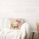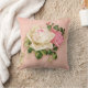 Coussin avec un bouquet de rose fleuri aux fleurs blanches et roses. Arrière - plan est rose avec un motif fleuri. Joli et élégant design.