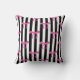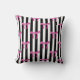 Coussin Boutons roses sur bandes noires et blanches