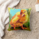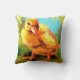 Un caneton jaune brouillé mignon fait sa manière sur le chemin de ressort sur ce coussin coloré.