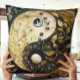 Coussin Brown et Tan Yin et Yang Contemporary Modern