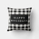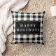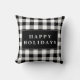 Ce buffle noir plaid happy holiday Christmas jeté oreiller est la décoration de vacances classique parfaite. Le design est composé d'un classique motif en plaid de buffle noir et blanc.