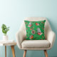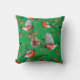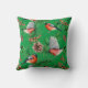 Le coussin de vacances Festive présente des taupiniers rouges avec des cônes de pin et des branches à feuillage persistant sur l'arrière - plan vert.