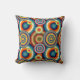 Cet oreiller de lancer a une conception Bauhaus de différents groupes de cercles concentriques dans les couleurs des années 1970.