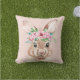 Coussin Bunny D'Aquarelle Rose Pastel Moderne Avec Fleurs