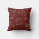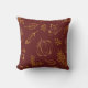 Elégant décor rustique automne saisonnier jetez oreiller maison avec des tons bordeaux et orange chaud doré entouré de feuilles d'automne et motif citrouille.