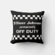 Un cadeau amusant pour la retraite de la police. Design noir et blanc avec les mots OFF DUTY et bandes de damier. Relax, lève les pieds, tu es hors service en permanence !