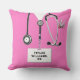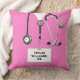 Un cadeau coussin créatif d'infirmière diplômée avec des gommages d'hôpital roses, un stéthoscope et un couteau suisse. Modifiez le texte pour ajouter le nom et les titres de compétence de votre infirmière, médecin ou assistant médical préféré.