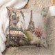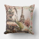 Coussin Café parisien Tour Eiffel rose vif Roses français