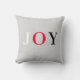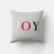 Calligraphie de joie moderne et élégante sur coussin décoratif de couleur argent. Les lettres peuvent être personnalisées.