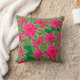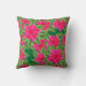 Coussin Camélias rose fuchsia et feuilles vertes