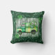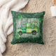 Saint Patrick's jour aquarelle trèfle et vintage ferme plaid camion vert chargé de fleurs blanches sur le bois vert patiné en détresse avec verre vert empreinte de léopard arrière - plan.