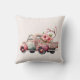 Un coussin avec une jolie illustration d'aquarelle blanche. Couleurs rose et rose. Camion ramassage avec un dossier/lit en bois ancien avec fleurs de cerisier.