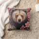 Coussin Captivant Brown Ours Gaze Fleurs roses