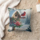 Coussin Cardinal d'hiver sur une maison d'oiseaux festive