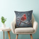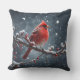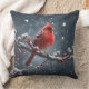 Coussin Cardinal rouge sur la branche de l'arbre en neige