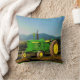 N'importe quel amateur de tracteur sera satisfait de ce coussin. Vient en 2 tailles. C'est un beau tracteur vert classique sur le champ de luzerne. Le foin vient d'être coupé et est disposé en rangs verts luxuriants. Le ciel est bleu. Les montagnes de la arrière - plan forment un paysage magnifique.