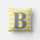 CLIQUEZ SUR PERSONNALISER L'OPTION MODÈLE ET ENTREZ MONOGRAM LETTERCarrière - plan jaune personnalisable avec bandes blanches des deux côtés du coussin. Gros monogramme initial en gris centré sur le devant.