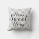 Carreau checkered gris à la maison doux à la maison de motif de guingan. Décoration à la maison douce à la maison mignonne pour le sofa ou le lit. Cadeau gentil pour la nouvelle partie de maison ou de pendaison de crémaillère. Couleurs grises et blanches. Conception élégante de typographie de manuscrit.