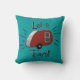 La rétro conception sur ce coussin d'accent est réminiscente des annonces d'impression des années 50 et le début des années 1960 avec un campeur de larme en rouge et argenté vintages et l'expression "nous laisse voyager !" De mon image numériquement créée d'original.