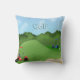 Ce carreau jouant au golf comporte un arrière - plan de terrain de golf avec un dessableur et le drapeau de golf, un chariot de golf rouge, un chariot de golf bleu tous les deux avec des sacs de golf. Perfectionnez pour n'importe quelle pièce dans votre maison ou bureau. Grand cadeau pour le golfeur dans votre vie. Ce coussin est disponible dans la ride libèrent le polyester 100% ou 100% évaluent le coton d'A, et dans deux ont classé 16" x16" ou 20" x20". Le choix est à vous.