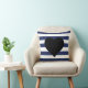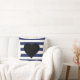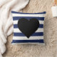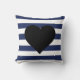 Coussin Carreau noir rayé bleu et blanc de coeur