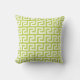 L'offre tire le carreau vert avec une conception principale grecque. Fabriqué à la main aux Etats-Unis. Grand coussin de coton avec un motif géométrique.