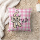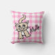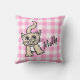 Un coussin modelé par style lumineux de guingan avec un chat mignon et votre coussin nommé dans le rose et le blanc. Un grand cadeau pour des amoureux de les chats.