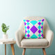 Carrés géométriques violets et turquoise lancent l'oreiller.