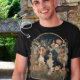Design d'inspiration vintage avec deux élégants spaniels Cavalier King Charles - un Blenheim et un Tricolor - dans un jardin luxuriant dans un style rappelant une tapisserie antique ou l'oeuvre de William Morris.