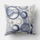 Une variété de cercles bleus et gris se combinent pour faire un design intéressant et attrayant sur ce coussin. Les images de cercle sont placées sur un arrière - plan blanc. Le motif est répété à l'arrière du coussin. *Merci à Milachi Design sur Etsy.com pour le motif circulaire utilisé dans cette conception.