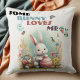 Un mignon coussin lapin de Pâques avec une citation aimante pour toute personne qui aime Pâques et lapin. Le design comprend un mignon lapin blanc avec un oeuf de Pâques, un panier d'oeufs, un papillon volant, un chant d'oiseau avec des fleurs de printemps. La citation "Certains Bunny m'aiment" est personnalisable. Idéal pour un cadeau chaleureux et des décorations de Pâques.