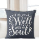 Ce coussin de foi porte le titre d'un hymne chrétien populaire d'antan - "It Is Well With My Soul" (C'est bien avec mon âme). Design dispose d'un texte blanc sur arrière - plan bleu, le texte et la couleur arrière - plan peuvent être modifiés à votre style unique.