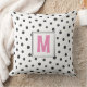 Coussin Chambre universitaire à monogramme à pois rose et