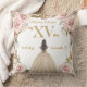 Personnalisez cet élégant oreiller rose vif Quinceañera / Sweet 16 anniversaire jetez facilement et rapidement. Cliquez simplement sur le bouton Modifier à l'aide des outils de conception pour modifier le texte, modifier les styles de police et les couleurs de police. Doté d'une coince fille habillée d'une belle robe de champagne, de fleurs roses chic et d'un cadre doré vintage orné. Cela fait un gardien parfait pour quinceanera, sweet sixteen, 18ème anniversaire, boule debutante et bien d'autres occasions! Objets correspondants disponibles en magasin. c) Somerset Fine Paperie