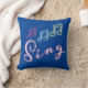 Le mot SING et trois notes de musique ensemble en néon contre un arrière - plan bleu foncé.