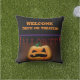 Un tour de bienvenue ou des traiteurs à votre maison avec ce coussin extérieur. Placez ce coussin sur votre véranda ou sur d'autres coins salons extérieurs. Ce coussin présente un design citrouille Jack-o'-lantern éffrayant sur un arrière - plan noir.